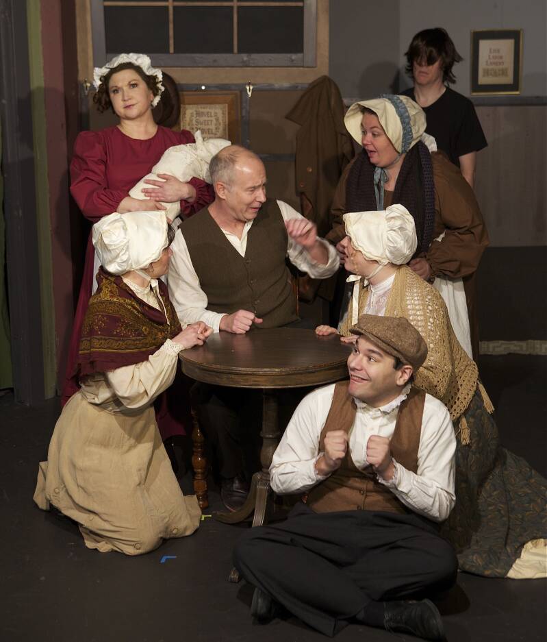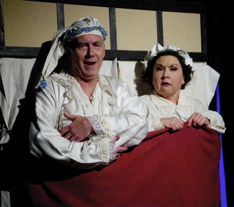 Exaggerate that situation, add a healthy dose of good comic timing, physical comedy, dialogue delivered quickly and confidently, but straight, and some satire, parody, and absurd or, better yet, racy behavior, and the result is usually a hilarious romp that will leave an audience in stitches. The more of these components that are delivered well in a play, the funnier it is, and in the case of Move Over Mrs. Markham, the farcical comedy that is currently running on stage at The Phoenix Theatre in Edmonds, the result is something that is laugh out loud funny from start to finish. The play, written by Ray Cooney and John Chapman, and directed here by Eric Lewis.